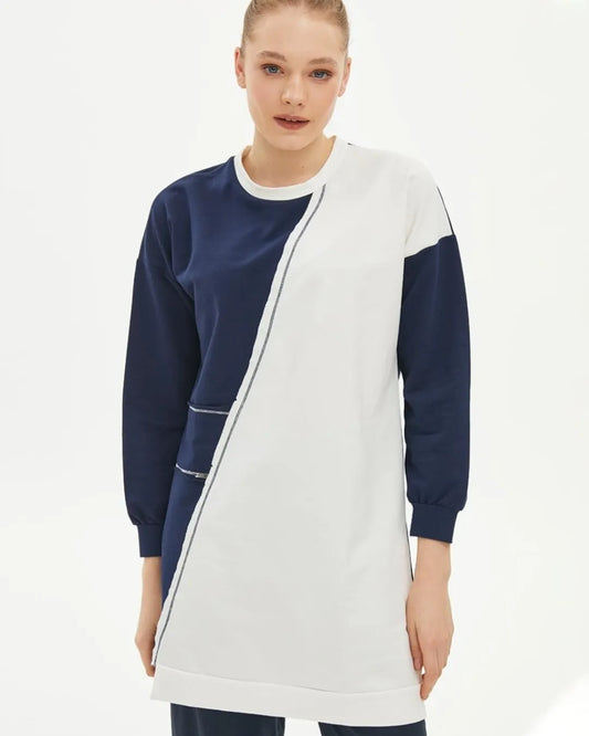 KYR Pieced Round Neck Sweatshirt Navy KY-b22-70016-11